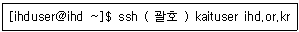 로컬 시스템의 계정과 다른 원격지 계정으로 ssh 서버에 접속하려고 한다. 다음 ( 괄호 ) 안에 들어갈 내용을 알맞은 것은?