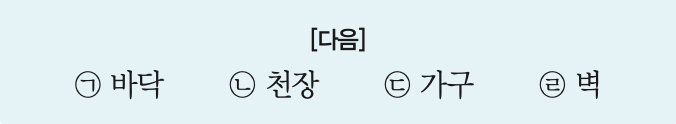 다음과 같은 실내 표면에서 일반적으로 추천반사율의 크기를 맞게 나열한 것은?