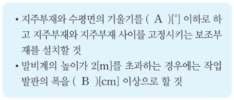 다음은 말비계를 조립하여 사용하는 경우에 관한 준수사항이다. ( )안에 들어갈 내용으로 옳은 것은?