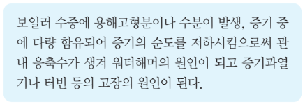 다음 설명은 보일러의 장해 원인 중 어느 것에 해당되는가?