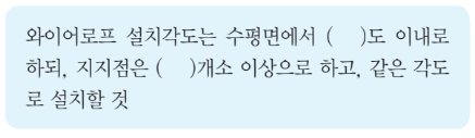 다음은 타워크레인을 와이어로프로 지지하는 경우의 준수해야 할 기준이다. 빈칸에 들어갈 알맞은 내용을 순서대로 옳게 나타낸 것은?