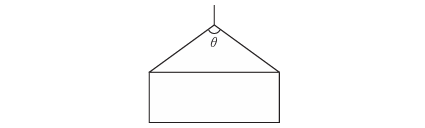 그림과 같이 2줄의 와이어로프로 중량물을 달아 올릴 때, 로프에 가장 힘이 적게 걸리는 각도(θ)(θ)는?