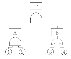 FT도에서 시스템의 신뢰도는 얼마인가?(단, 모든 부품의 발생확률은 0.1 이다.)