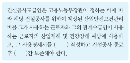 다음은 산업안전보건법령에 따른 산업안전보건관리비의 사용에 관한 규정이다. ( )안에 들어갈 내용을 순서대로 옳게 작성한 것은?