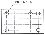 그림과 같이 철판에 구멍일 뚫려있는 도면의 설명으로 올바른 것은?
