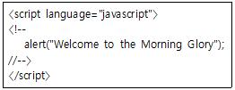 페이지가 열릴 때 자동으로 Welcome to the Morning Glory라는 문구가 있는 메시지 창이 뜬다.