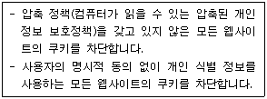 인터넷 익스플로러 6.0에서 다음과 같이 개인정보 설정을 하고자 한다. 선택해야 할 보안 수준으로 옳은 것은?