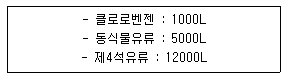 다음과 같이 위험물을 저장할 경우 각각의 지정수량 배수의 총합은 얼마인가?