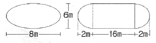그림과 같은 타원형 탱크의 내용적은 약 몇