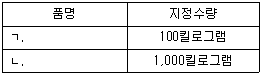 다음 표의 빈칸 (ㄱ,ㄴ)에 알맞은 품명은?