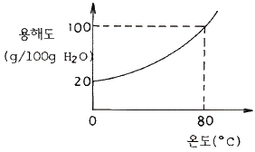 다음 그래프는 어떤 고체물질의 온도에 따른 용해도 곡선이다. 이 물질의 포화용액을