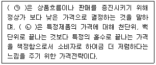㉠ 선도가격(leader pricing),㉡ 단수가격(odd pricing)
