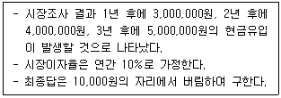 대한이는 작은 가게를 인수할 것을 고려 중이다. 아래 글상자의 내용을 이용해서 3년치 현금유입에 대한 현재가치를 계산한 것으로 옳은 것은?