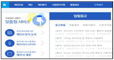 아래의 그림은 조달청에서 제공하는 서비스 화면이다. 협상에 의한 계약 전 과정에 대하여 사업발주를 위한 제안요청서 작성부터 평가, 사업관리 등 사업의 처음부터 끝까지 서비스하는 시스템 명칭으로 가장 옳은 것은?