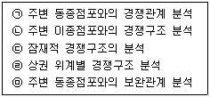아래 글상자의 내용 가운데 상권 내 경쟁관계를 분석할 때 포함해야 할 내용만을 모두 고른 것으로 옳은 것은?