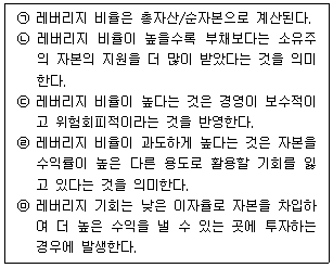 레버리지 비율에 대한 설명으로 옳은 것을 모두 고르면?