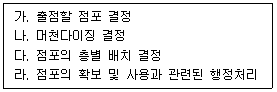 아래 글상자에 출점과 관련된 몇 가지 의사결정 사안들이 제시되어 있다. 다음 중 출점 의사결정 사안을 논리적과정에 따라 가장 올바르게 배열한 것은?
