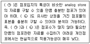 점포의 입지결정을 내리기 위한 상권분석 기법 중에서 (㉠)과 (㉡)에 가장 옳은 것은?
