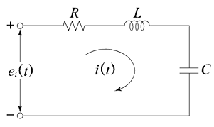 RLC 회로망에서 입력을 ei(t)e_i(t), 출력을 i(t)i(t)로 할 때, 이 회로의 전달함수는?