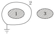 그림과 같이 도체 1을 도체 2로 포위하여 도체 2를 일정 전위로 유지하고 도체 1과 도체 2의 외측에 도체 3이 있을 때 용량계수 및 유도 계수의 성질로 옳은 것은?