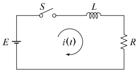 다음과 같은 회로에서 t=0에서 스위치 s를 닫으면서 전압 E[V]를 가할 때 L 양단에 걸리는 전압
