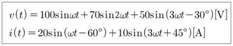 어떤 회로의 단자 전압과 전류가 다음과 같을 때, 회로에 공급되는 평균전력은 약 몇 [W]인가?