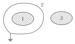 그림과 같이 도체 11을 도체 22로 포위하여 도체 22를 일정 전위로 유지하고 도체 11과 도체 22의 외측에 도체 33이 있을 때 용량계수 및 유도계수의 성질로 옳은 것은?
