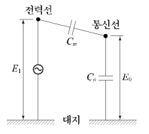 단선식 전력선과 단선식 통신선이 그림과 같이 근접되었을 때, 통신선의 정전유도전압 E0E_0는?