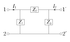 다음과 같은 π\pi 회로의 44단자 정수 중 DD의 값은?