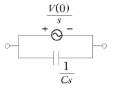 그림과 같은 커패시터 CC의 초기 전압이 V(0)V(0)일 때 라플라스 변환에 의하여 ss 함수로 표시된 등가회로로 옳은 것은?