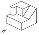 다음 등각 투상도에서 화살표 방향을 정면도로 할 경우 평면도로 올바른 것은?
